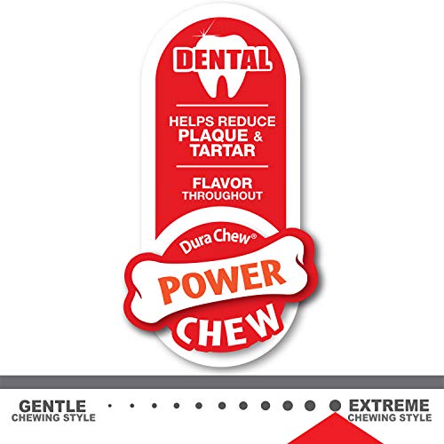 Give your dog something good to chew on. Made with tough, durable nylon, our Power Chew Peanut Butter Chew Toy satisfies powerful chewers. It provides long-lasting enjoyment, satisfies the natural urge to chew, and encourages positive chewing habits. Plus, the bristles raised during chewing promote clean teeth and help control plaque and tartar. Different dogs have different chewing styles and strengths, even within the same breed, so be sure to choose the correct chew toy size and strength for your dog.