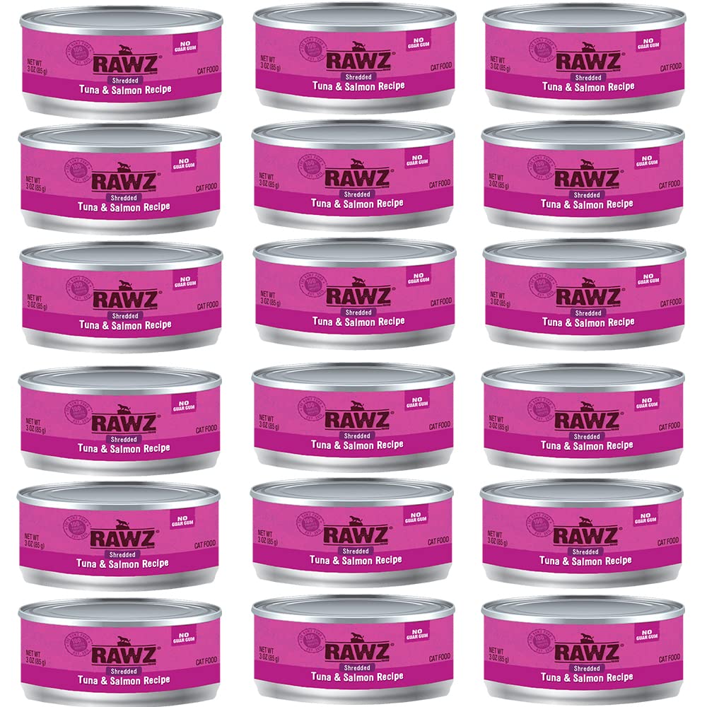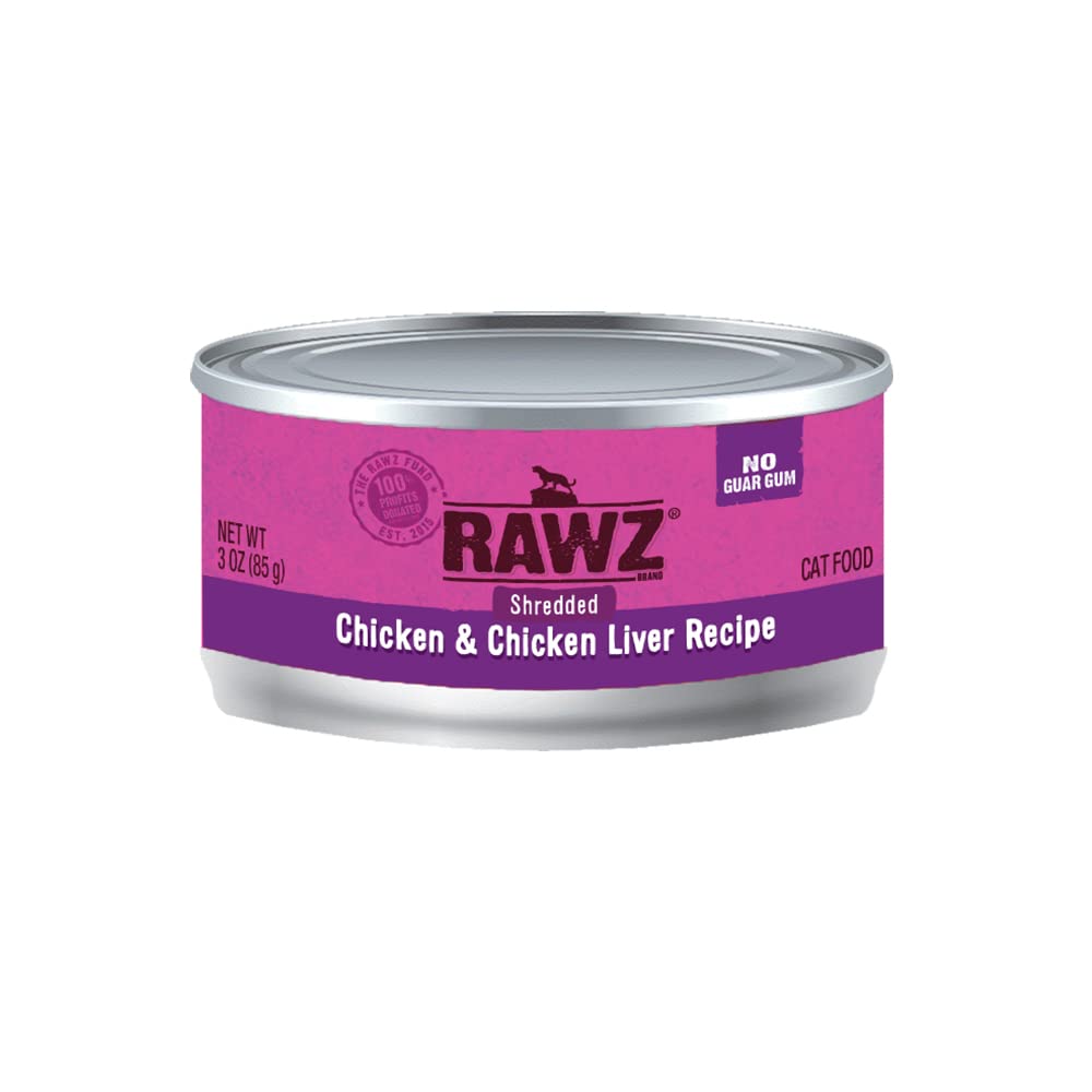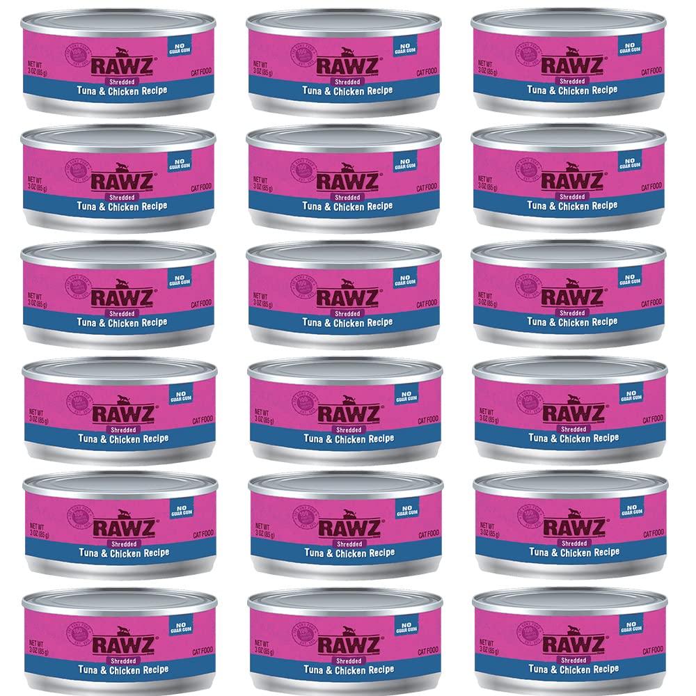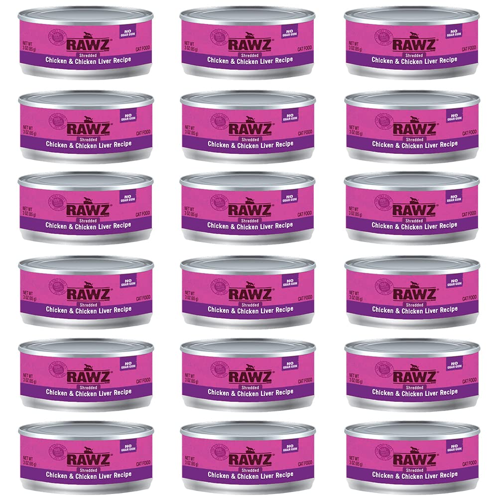 RAWZ Natural Premium Shredded Canned Cat Wet Food - Grain Free Made with Real Meat Ingredients No BPA or Gums - 3oz Cans 18 Count
